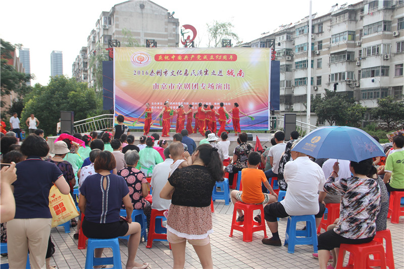 为庆祝中国共产党成立95周年,缅怀党的光荣历史,6月30日下午,城南街道办事处邀请南京京剧团在城南街道百姓大舞台举办了一场“庆党节·颂党恩”文化惠民演出活动。