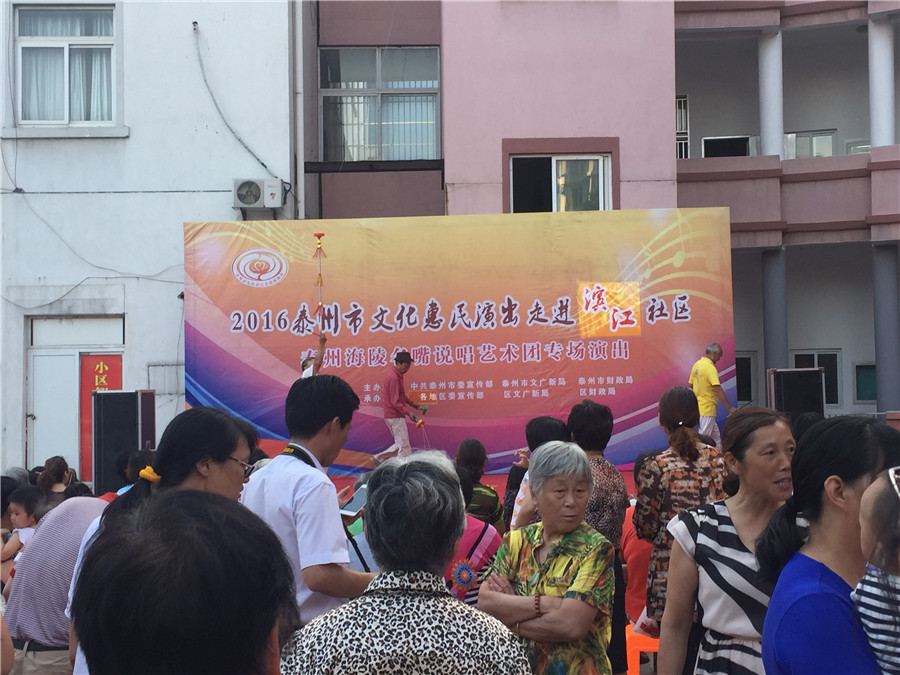 为了丰富滨江社区居民群众的精神文化生活,实现文化惠民,8月30日下午16:00,滨江社区邀请海陵区名嘴说唱团来社区开展惠民演出活动。